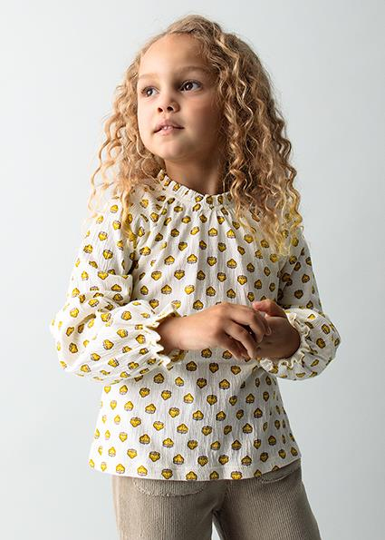 Fırfırlı manşetli kız çocuk tişörtü. Düğmeli yakası sayesinde giyilmesi kolaydır. Şifon kumaş hafiftir ve fırfırlı detaylara sahiptir. Pamuklu ürünlerimizi tercih ederek, Better Cotton girişimine olan bağlılığımızı desteklemiş olursunuz. Better Cotton elyafı, kütle denge sistemiyle tedarik edilir ve nihai üründe fiziksel olarak tanımlanamayabilir.