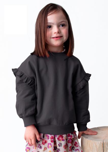 Kız çocuk sweatshirt'ü. Süslemeler: dekoratif fırfırlar. Pamuklu ürünlerimizi tercih ederek, Better Cotton girişimine katkımızı desteklemiş olursunuz. Better Cotton elyafı, kütle denge sistemiyle tedarik edilir ve nihai ürünlerde fiziksel olarak tanımlanamayabilir.