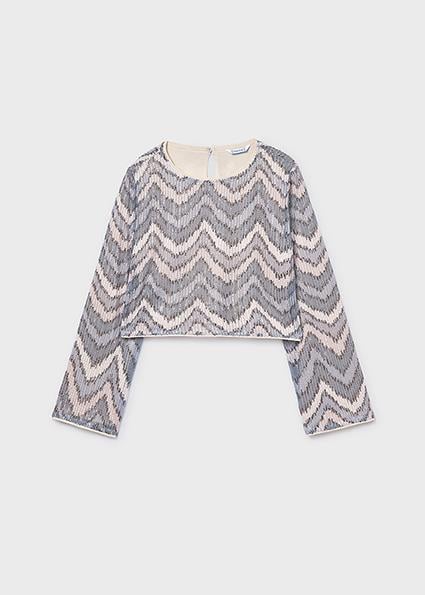 25-07031-024 Mayoral Gri Kız Çocuk Pullu Bluz 7031