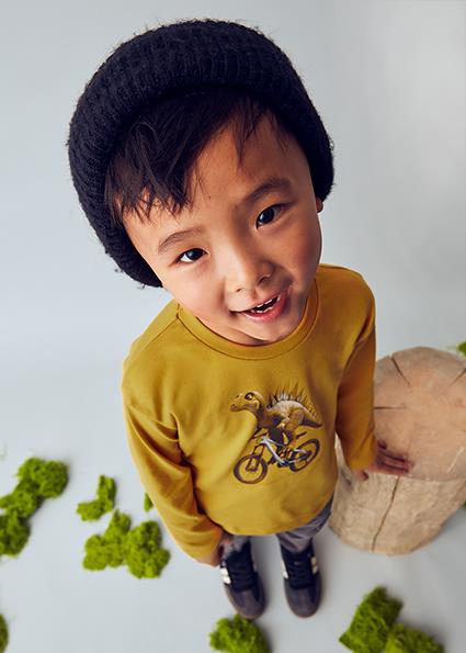 25-04087-030 Mayoral Sarı Erkek Çocuk Baskılı Uzun Kollu Tişört 4087
