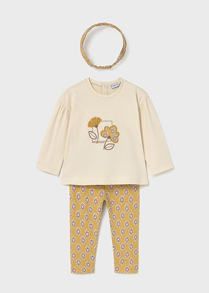 25-02744-011 Mayoral Sarı Kız Bebek Saç Bandı, Tişört ve Tayt Takım 2744