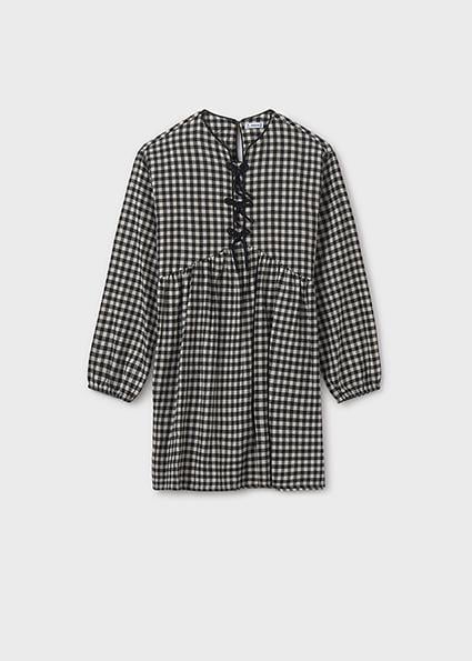 25-07916-046 Mayoral Siyah Kareli Kız Çocuk Elbise 7916
