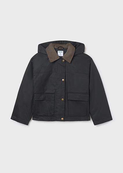 25-07433-056 Mayoral Siyah Kız Çocuk Yakalı Kapüşonlu Mont 7433